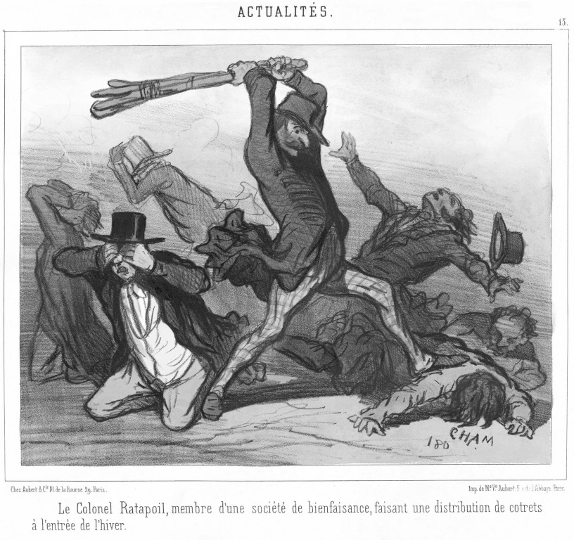 Honoré Daumier est alors caricaturiste au Charivari, un quotidien satirique. Républicain résolu, il crée le personnage de Ratapoil pour dénoncer les manœuvres du pouvoir et se moquer du bonapartisme forcené.